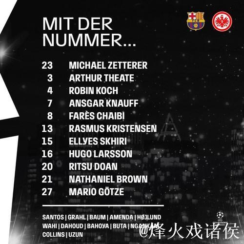 巴萨vs法兰克福:亚马尔、莱万、拉菲尼亚首发,